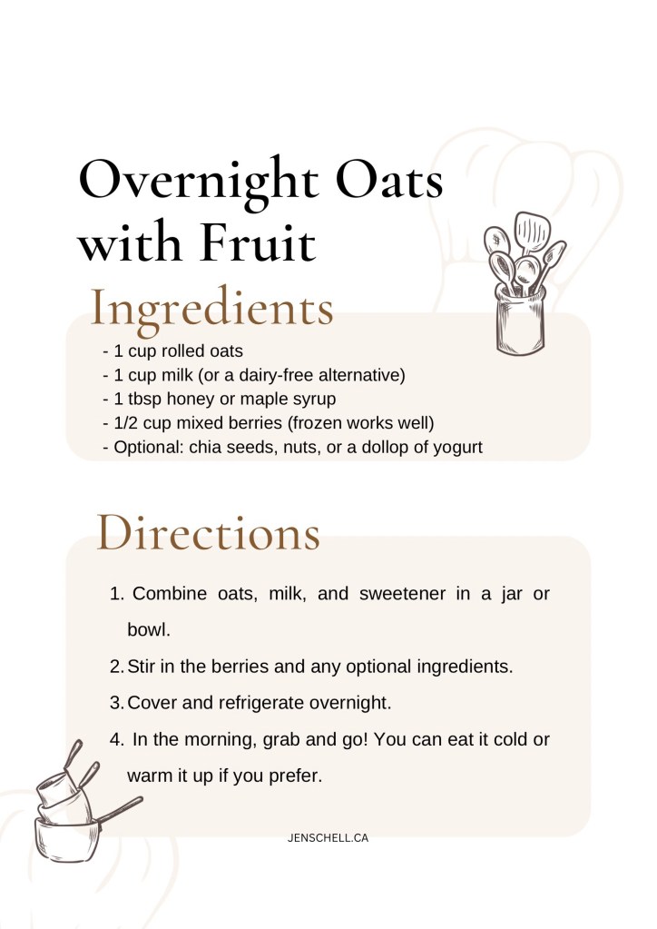 1. Breakfast: Overnight Oats with Fruit