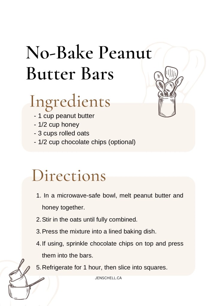 4. Dessert: No-Bake Peanut Butter Bars